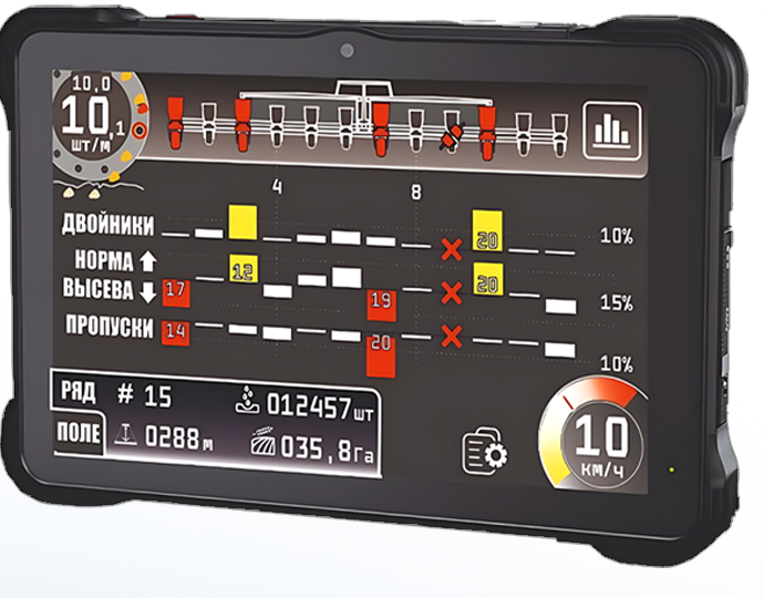 - оборудована цветным графическим дисплеем, отображающим скорость сева, норму высева и засеянную площадь — всё, чтобы работа в поле была максимально удобной.