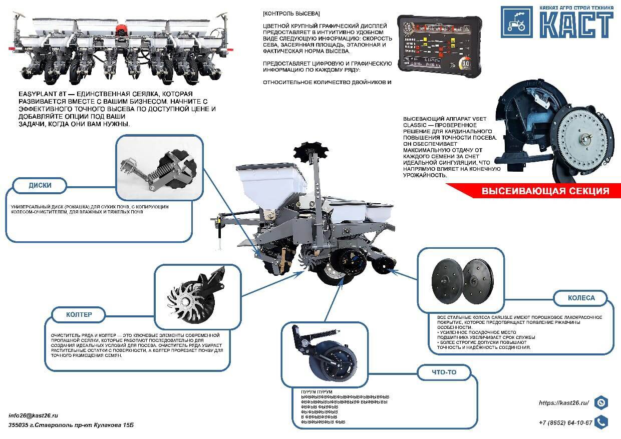 Компания «КАСТ» предлагает современное решение — дисковую прицепную пропашную сеялку EasyPlant, созданную на основе лучших технологий Kinze.