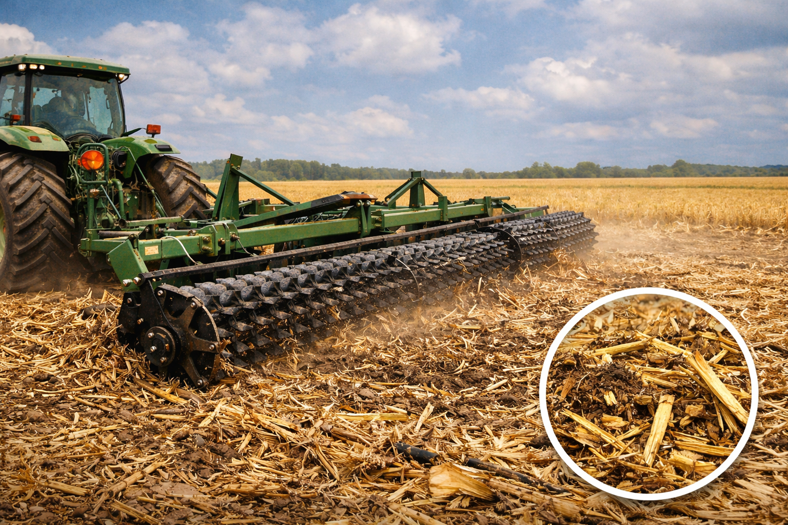 Один из эффективных инструментов работы с пожнивными остатками — рубящий каток.